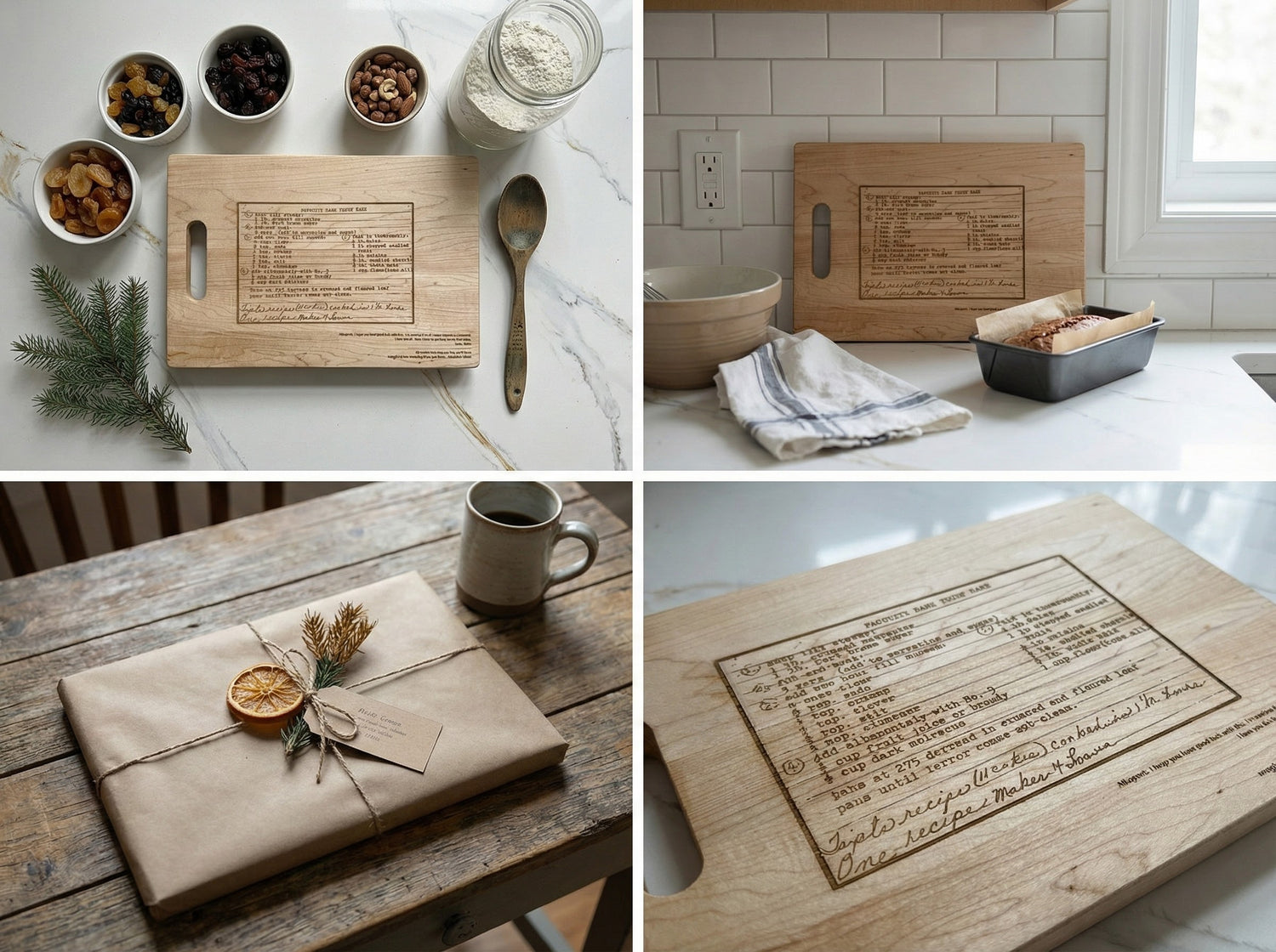 Elevate your kitchen with handcrafted engraved cutting boards made from premium wood....