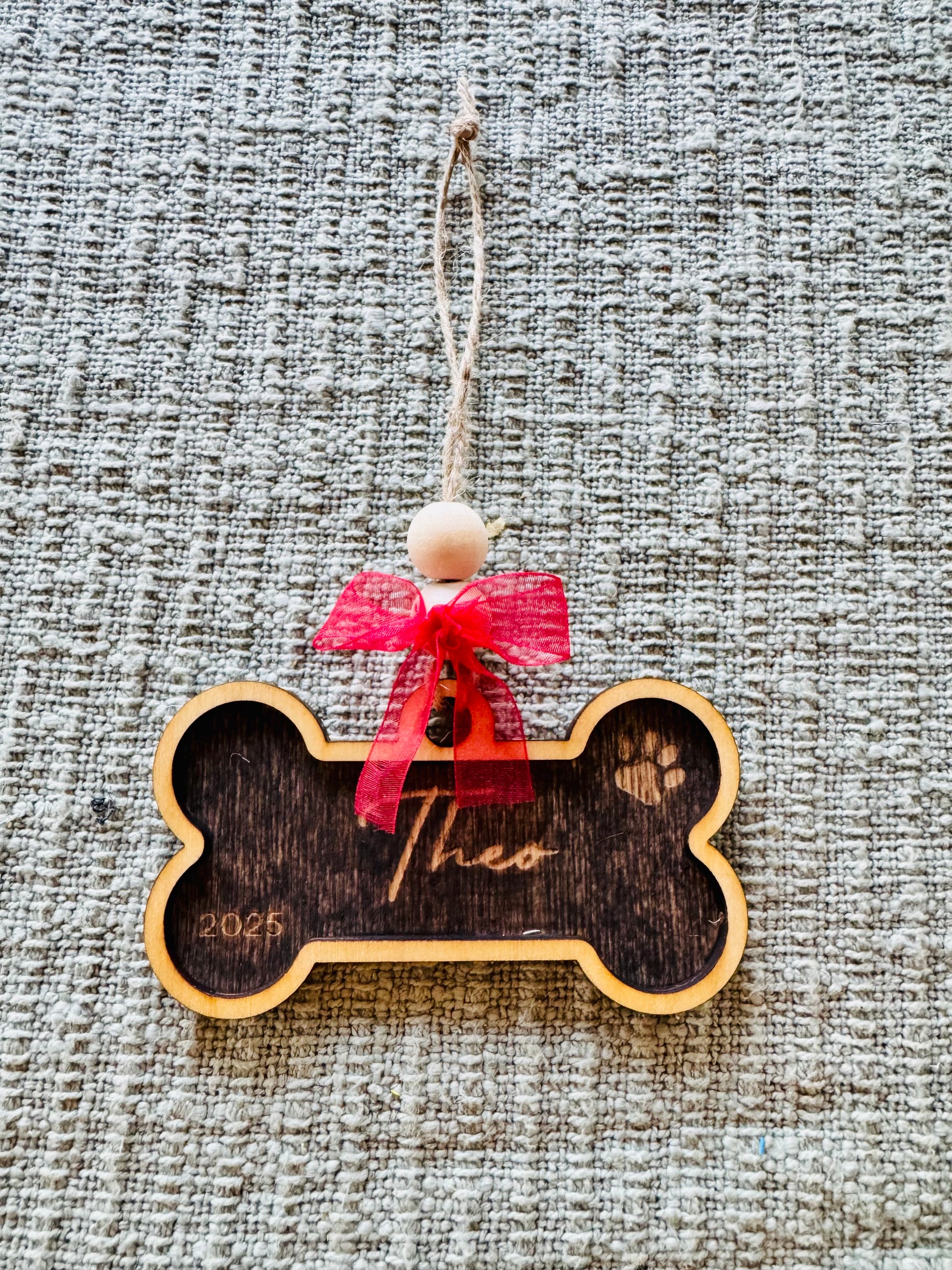 Customized Dog Bone Ornament - Handcrafted Wood Pet Decor